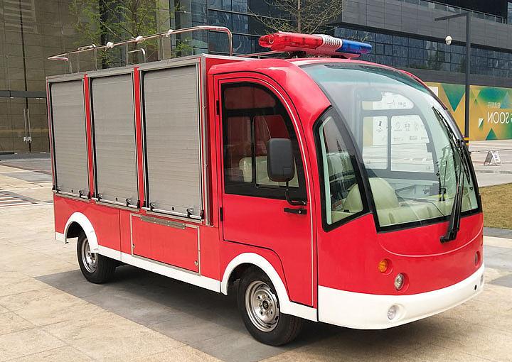 电动消防车是普通消防车的瘦身版,也称作小型消防车,微型消防车是最年新研发生产的新能源产品。因为他的驱动方式为直流电机驱动,不需加油,就可以行驶灭火车上配有高压水泵1台,另配有消防斧、消防锤、消防钳、及2套干粉灭火器等灭火工具。