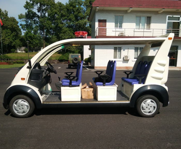 1.车身:车身为一体式金属冲压车壳,整车酸洗磷化阴极电泳处理,美观耐用﹑重量轻等独特的优越性 2.底盘:整体表面经酸洗磷化耐腐蚀阴极电泳处理,确保常年永不锈蚀,平稳性,坚固性极佳 3.前挡风玻璃 :汽车专用夹胶钢化玻璃配雨刮器,自动复位功能 4.座椅:两排超前仿皮革面料+高回弹PU,带扶手,乘坐舒适。(可选公交座位) 5.仪表台:电压表,电流表,电量表、里程表,材质采用轿车软包吸塑材质仪表台。 6.方向系统:采用双输出方向机,自动调节间隙。匹配完善的梯形机构,转动没有死角,方向更轻便。 7.灯光/喇叭:配前照明大灯、转向灯、刹车灯、倒车灯、喇叭。 8.电机:高效交流动力电机,动力强大,牵引性能优越,低噪声,过载能力强,使用寿命长,电机与后桥主轴连接涂抹特种润滑油,防锈、降噪、耐高温(提供:电机配装计算机软件证书) 9.电池:深循环胶体免维护电池6V/8只电池组电压:48V,电池标称容量:200AH 10.电控系统:原装Enpower电控,具有过温保护电路的功能,启动更平稳(提供:电动车中控软件证书) 11.充电机:全自动高效脉冲式微电脑智能充电机,充满电后自动停止,可有效延长电池使用寿命 12.后桥悬挂系统:前桥及悬挂为独立悬挂,结构简单,稳定性好,不磨轮胎。后桥为整体式后桥、无缝钢管焊接桥壳,冷挤压行星齿轮,噪音低,耐用可靠。 13.制动系统:前碟后毂四轮双回路液压制动和独立的驻车制动(手刹) 14.轮胎形式:钢制轮毂+装饰罩,真空甲午线轮胎,165/70R13 15.其他配置:配优质扬声器;采用铝合金材质,牢固、响亮、耐用,内部内置双功放管,防雨防晒,耐低温、抗高温,环境适应性强